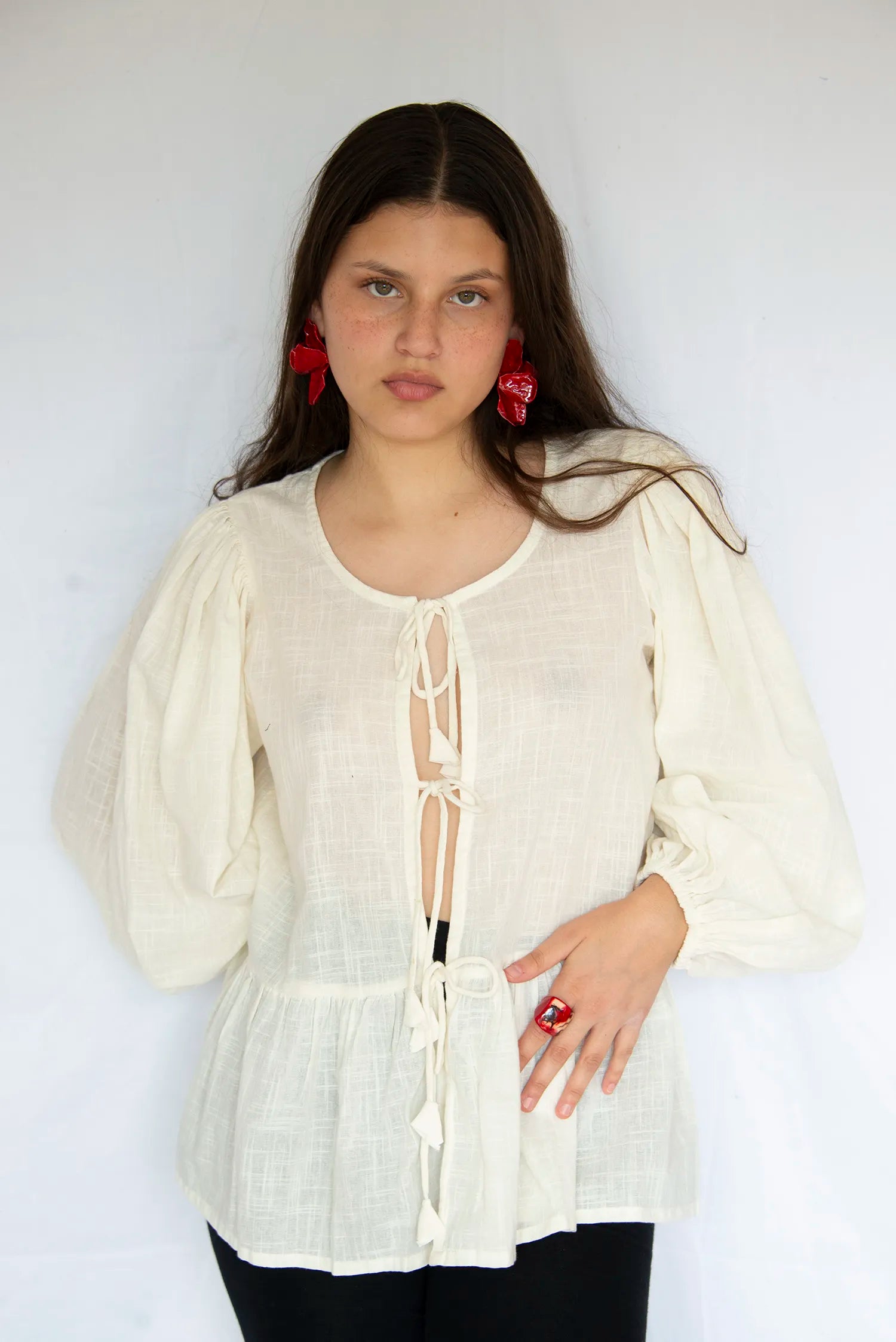 - Blusa de manga larga con lazos