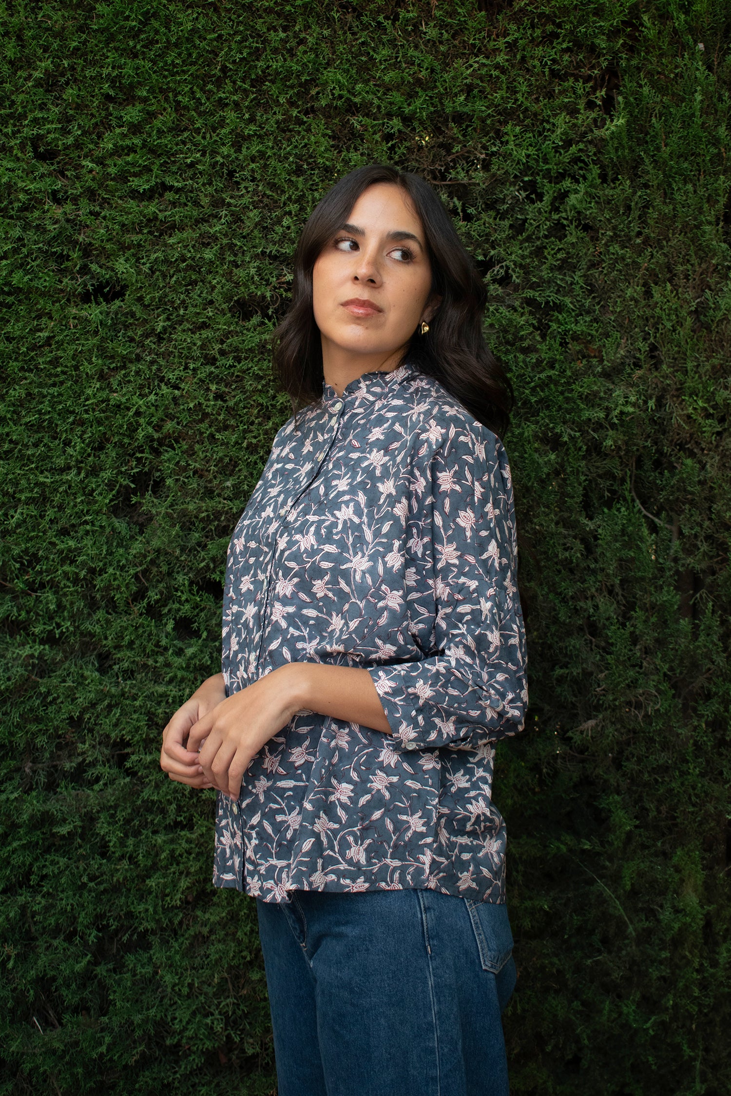 Camisa oversized de algodón 100% estampada con blockprint artesanal.