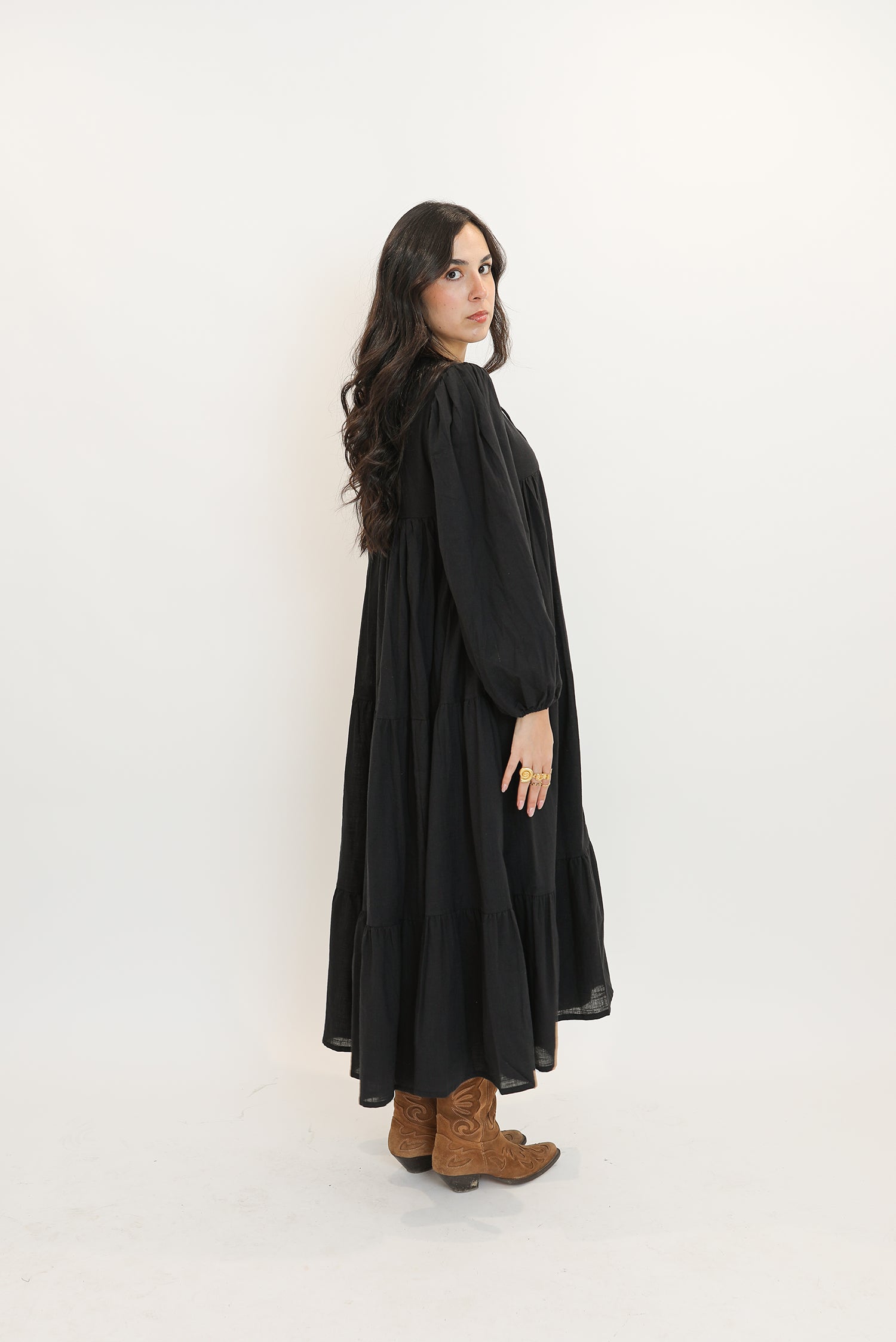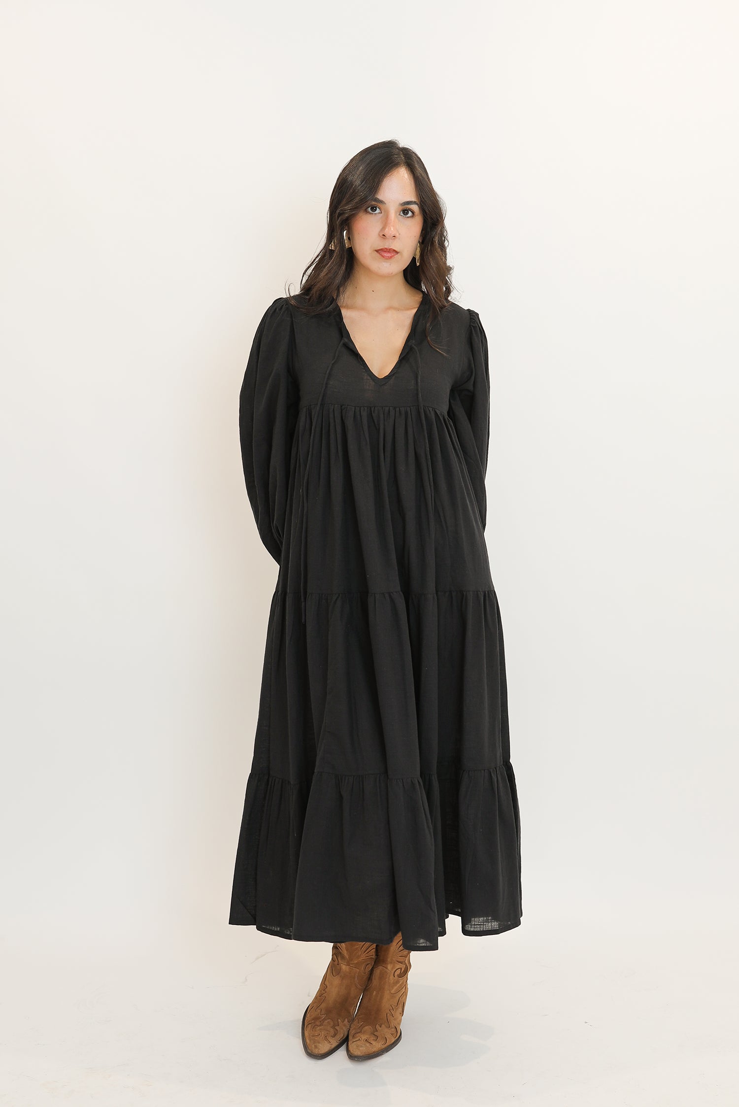 - Maxi dress de manga larga en 100% algodón.